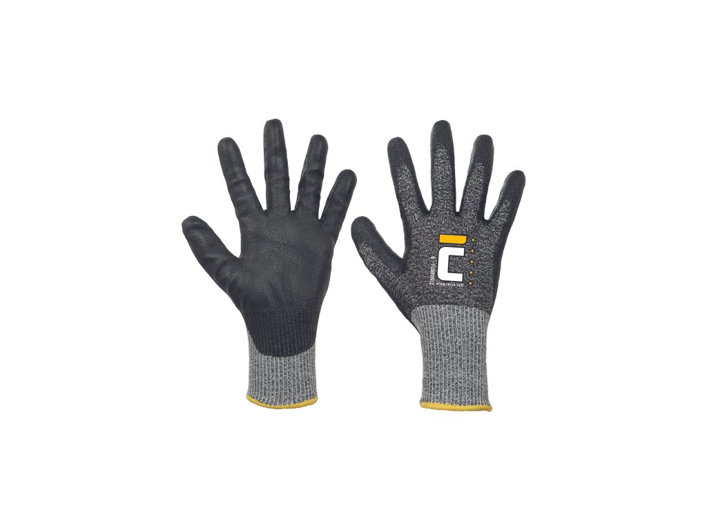• neporezové bezšvové pletené rukavice máčané v PU v dlani s najlepšou ochranou voči prerezaniu