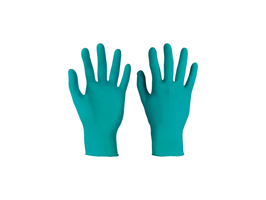 Zelené antistatické jednorazové rukavice zo 100 % 0,12 mm silného nitrilu bez prímesí, s rolovaným okrajom, pudrované (A92-500) alebo nepudrované (A92-600 a A92-605), v celkových dĺžkach 24 cm a 30 cm.Dodatočné parametre