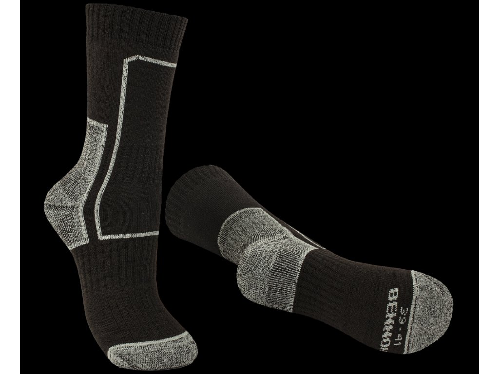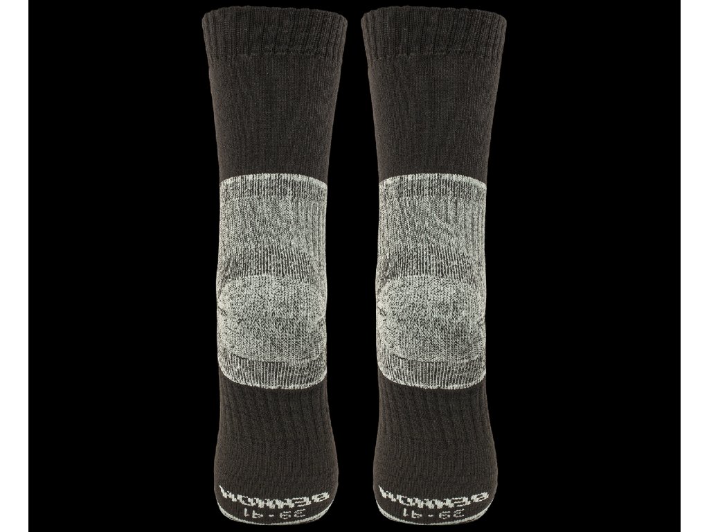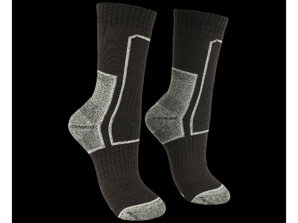 Profesijné a trekové záťažové ponožky s anatomicky tvarovanou a zosilnenou konštrukciou chodidla.Funkčný polypropylénový froté úplet podporuje odvod vlhkosti od chodidla. Ponožky sú príjemne elastické a pohodlné na nosenie.