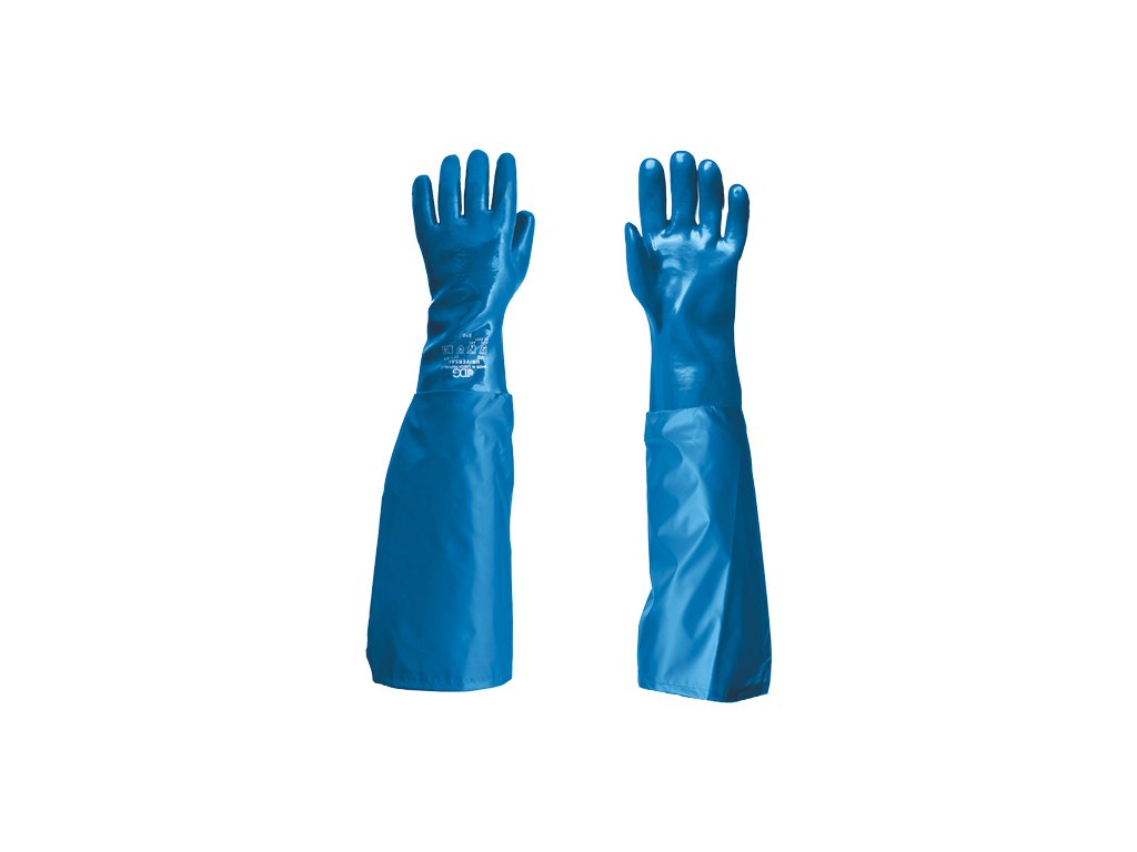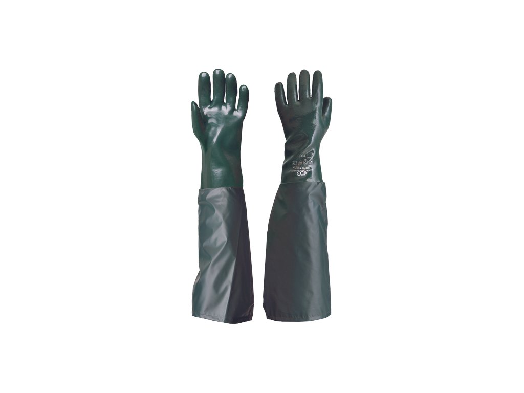Rukavice šité z bavlneného úpletu, máčané v PVC s obsahom nitrilu, odolné mechanickým a chemickým rizikám, v celkovej dĺžke 65 cm.Dodatočné parametre