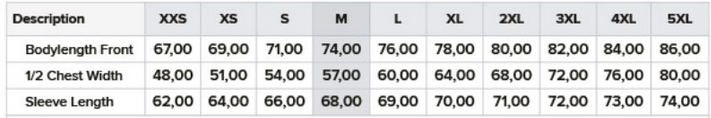 Tabuľka veľkostí: