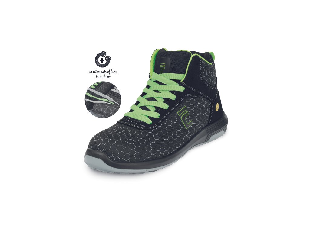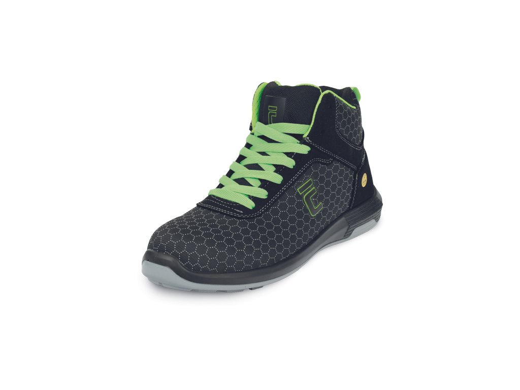 Bezpečnostná členková obuv s tužinkou zo sklenených vlákien a kompozitnou stielkou proti prepichu.