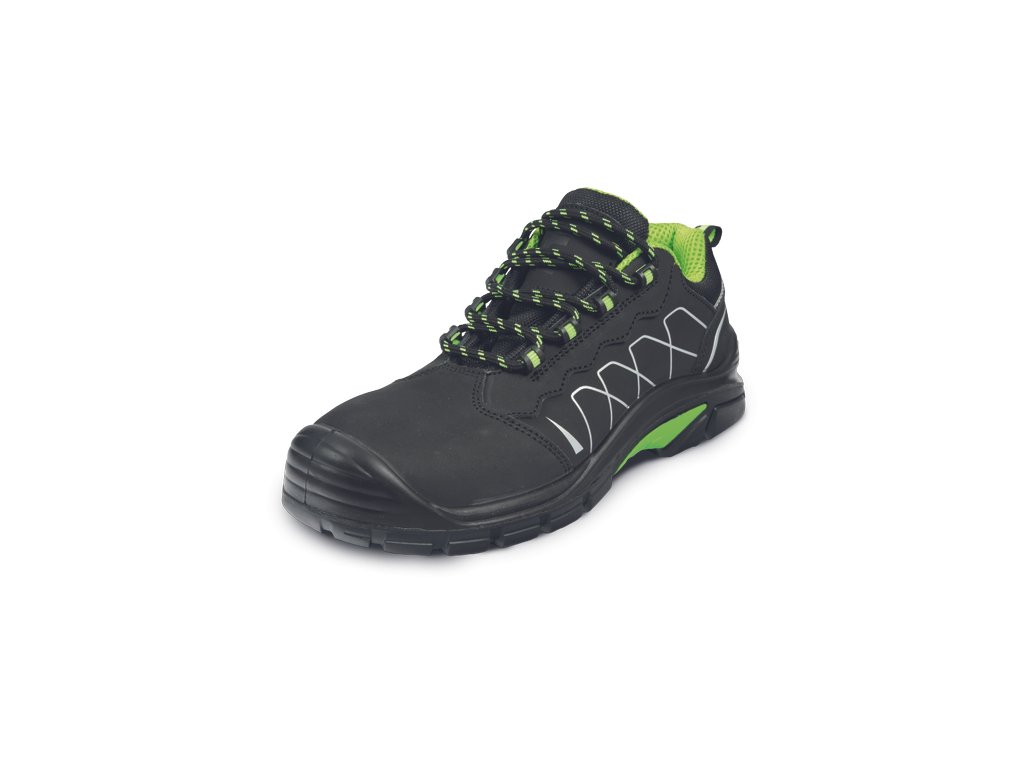 • moderná bezpečnostná poltopánka s kompozitnou stielkou proti prepichu a kompozitnou tužinkou v špici, ktorá chráni pred stlačením silou do 15 kN alebo pádom bremená s váhou do 20 kg z výšky 1 m • antistatická podrážka vyrobená z kombinácie polyuretánu a veľmi odolnej gumy garantuje ale aj bezpečie vďaka protišmykovým vlastnostiam podrážky, ktorá je navyše rezistentná olejom a oderu • zvršok obuvi je vyrobený z prírodnej kože „NUBUCK a vnútorná podšívka z priedušného polyesteru • reflexné prvky garantujú zvýšenú viditeľnosť užívateľa • tento model je vybavené komfortnou vnútornou stielkou, ktorá vďaka gélovej päte ešte lepšie tlmí nárazy a prináša maximálny pocit pohodlia počas práce • tyto topánky vyzerajú ako športová obuv, ale pri tom dokonale ochránia vašej nohy • v každej krabici druhy pár šnúrok navyše