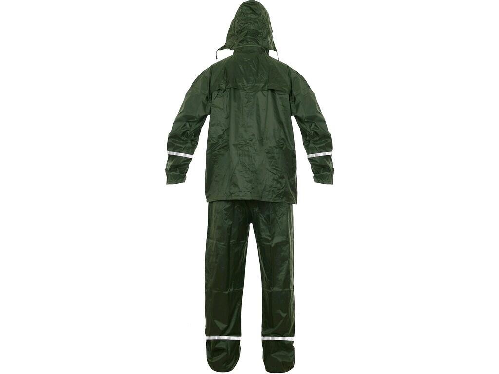 Nepremokavý odev do dažďa s kapucňou v golieri, nižšia hmotnosť.Zapínanie na zips, sťahovanie v dolnom okraji, vetranie na chrbte a v podpazuší, nohavice v páse do gumy, lepené švy.