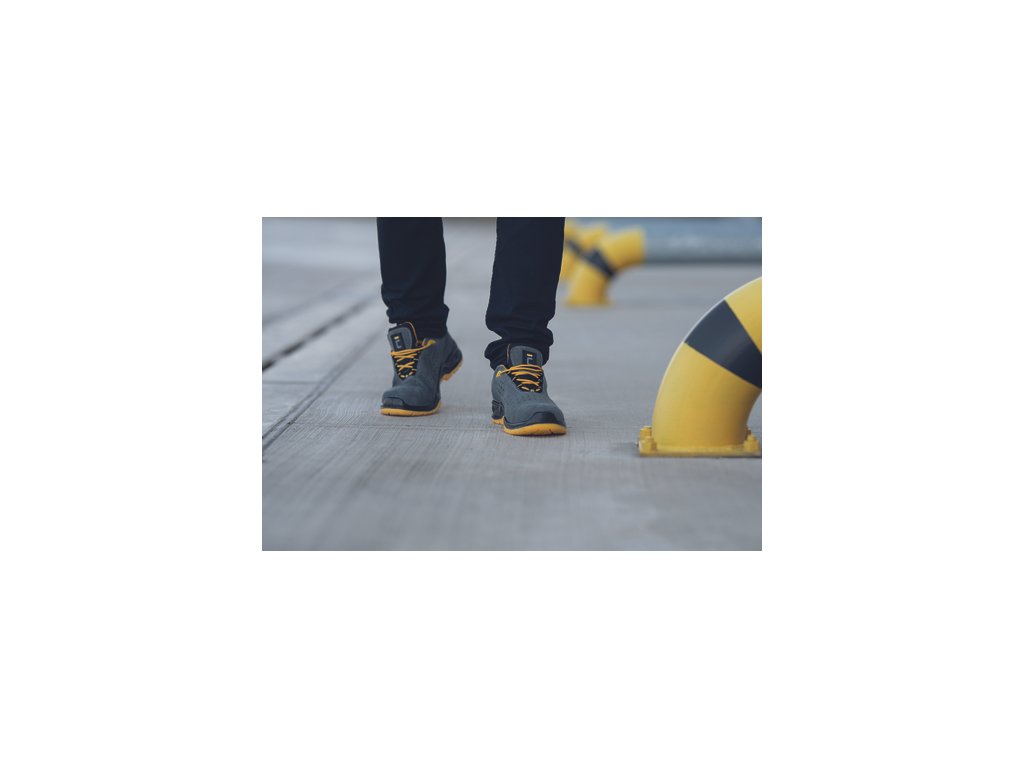 • bezpečnostná poltopánka v modernej šedo-žltej farebnej kombinácii • zvršok obuvi je vyrobený z nubuk kože a perforovaný po celej dĺžke • protišmyková podošva odolná olejom je vyrobená z dvojhustotného polyuretánu a zaisťuje maximálnu istotu pri každom kroku • obuv je vybavená komfortnou, perforovanou vnútornou stielkou, ktorá garantuje pohodlie a cirkuláciu vzduchu vo vnútri topánky • absorpcia energie v oblasti päty tlmí nárazy a obmedzuje pocit únavy nôh • vďaka bezpečnostnej kompozitnej tužinke obuv spĺňa požiadavky normy EN ISO 20345:2011 • to znamená, že chodidlá sú chránené pred stlačením silou do 15 kN alebo pádom bremena s váhou do 20kg z výšky 1m • chodidlá sú chránené aj zo spodu a to vďaka kompozitnej stielke proti prepichnutiu Obuv neobsahuje kovové súčasti a je vybavená funkciou ESD. Preto je to ideálny model pre vnútorné priestory a citlivé prostredie, kde je potrebné zabrániť vzniku iskier z elektrostatického výboja alebo pre priestory vybavené bezpečnostným rámom. Vďaka minimalistickému dizajnu sa tento model bude skvele hodiť k väčšine kolekcií pracovných odevov Cerva.